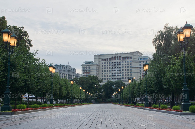 Аллея в городском парке утром