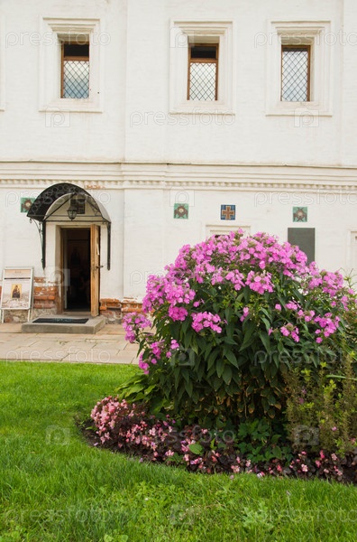 Цветы в парке рядом со стеной