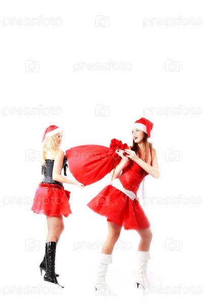 Привлекательные женщины в рождественских костюмах