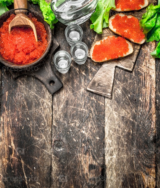 Водка и бутерброды с красной икрой