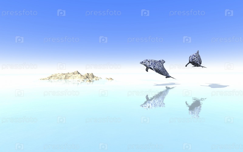 Стилизованные дельфины над океаном
