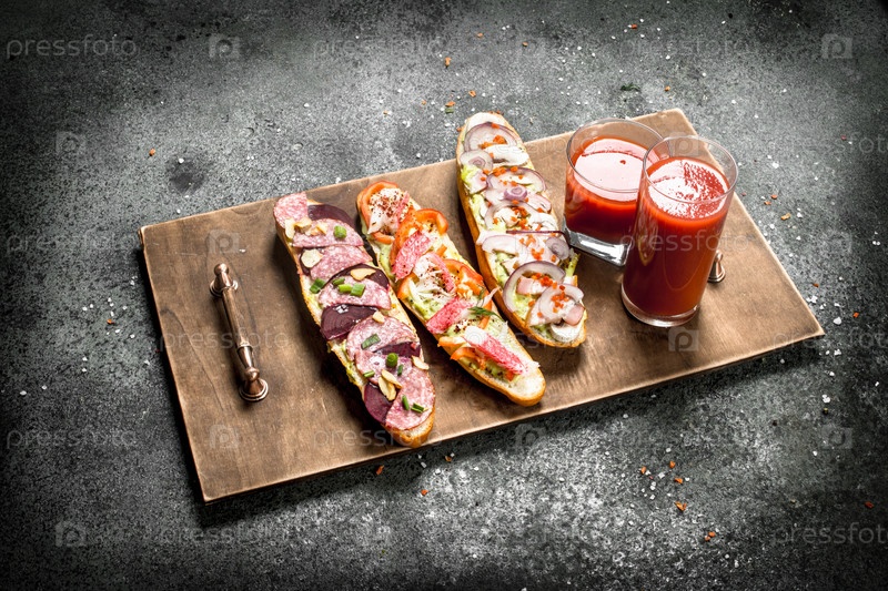 Свежие бутерброды с томатным соком