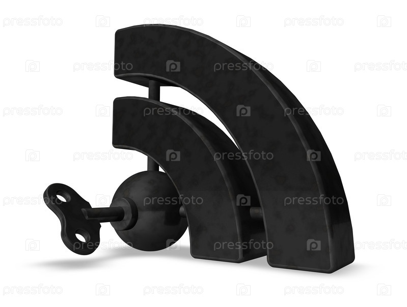 Металлический символ rss с ключом - 3d иллюстрация
