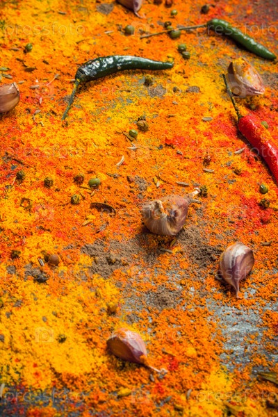 Разноцветные специи с чесноком