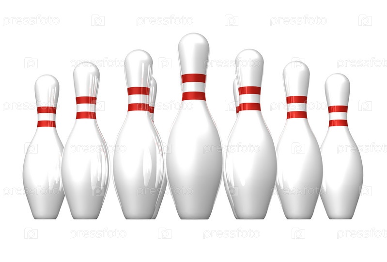 Кегли для боулинга на белом фоне. Трехмерная иллюстрация