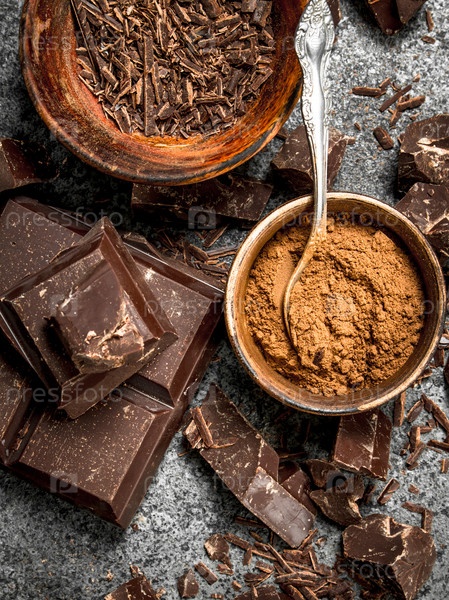 Куски шоколада с какао-порошком