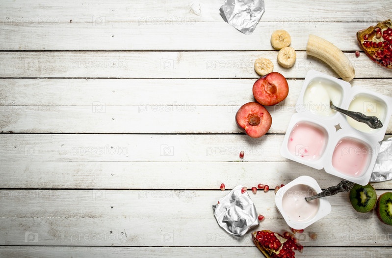 Различные фруктовые йогурты