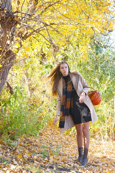 Красивая девушка гуляет в лесу