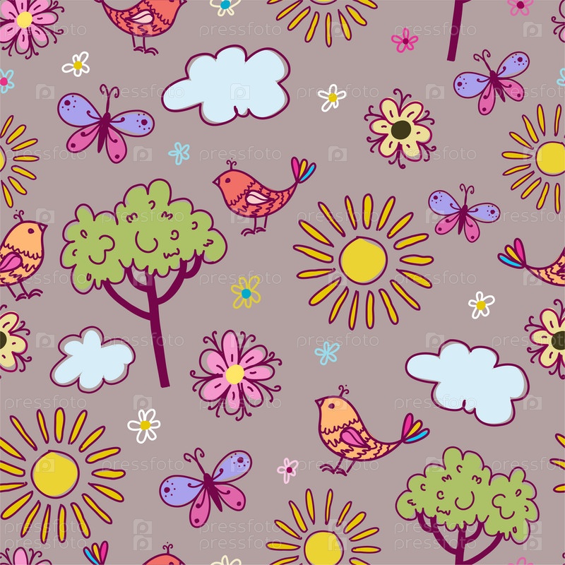 Бесшовный фон с цветами и птицами