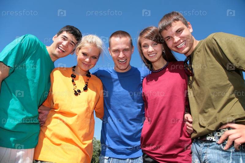 Друзья в разноцветных футболках
