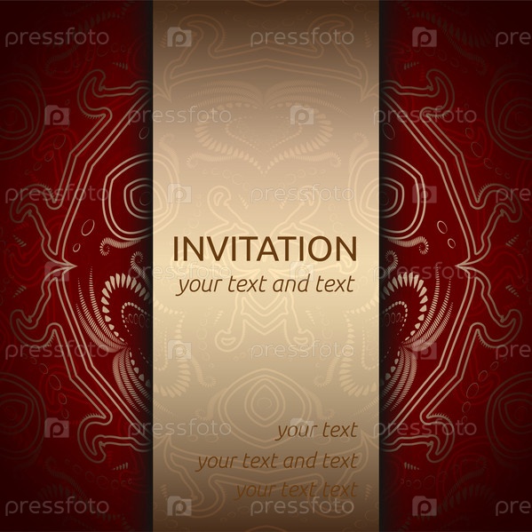 Пригласительный билет в красном и золотом с украшениями