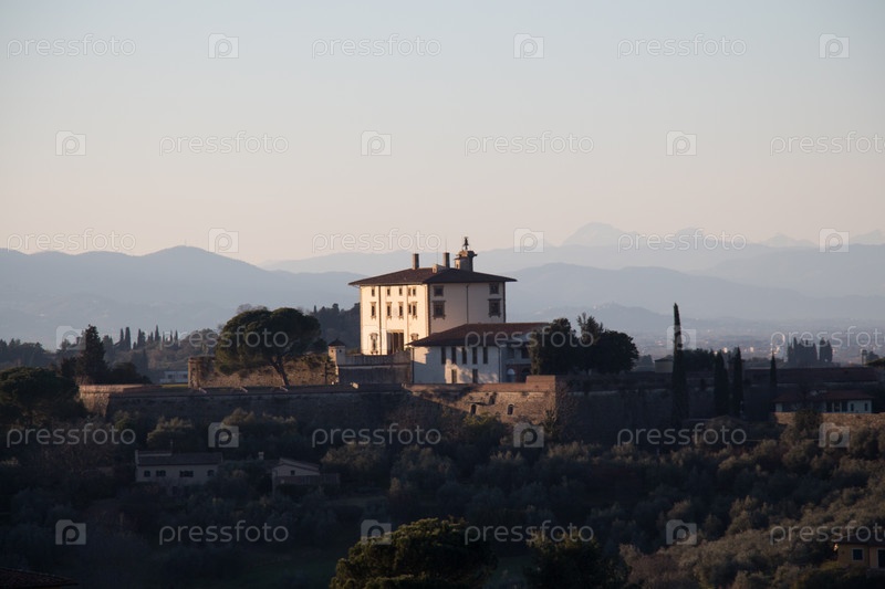 Тоскана пейзаж на закате, недалеко от Флоренции, Италия