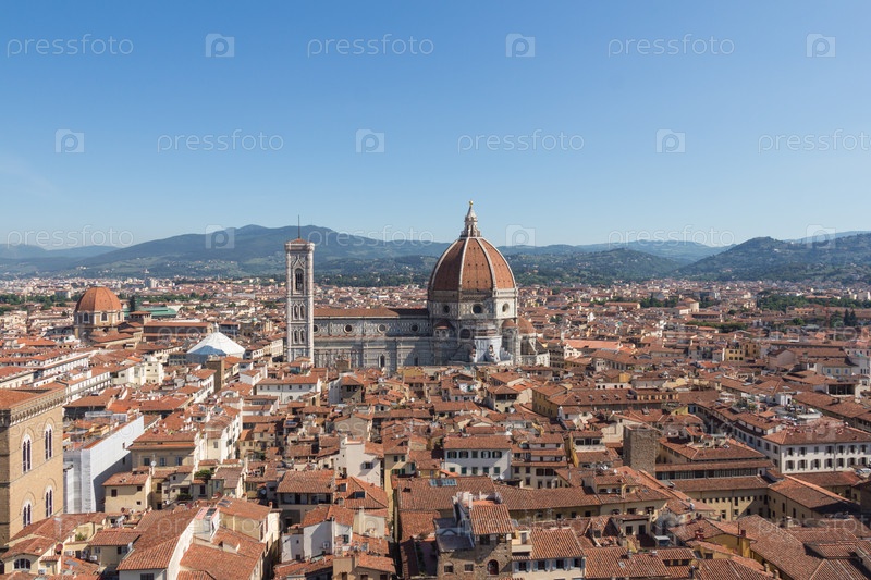 Флорентийский городской пейзаж с собором Флоренции в солнечный день, Тоскана, Италия