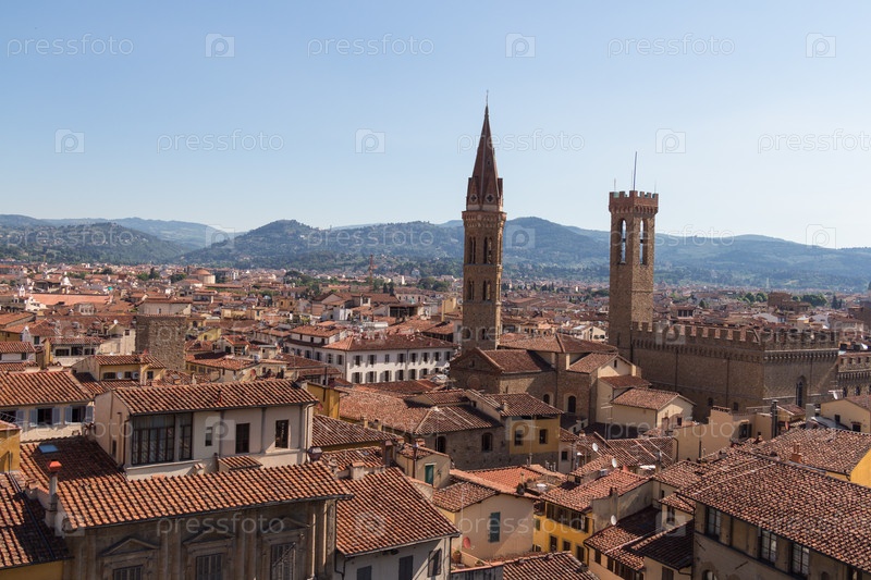 Красные крыши Флоренции от Палаццо Веккьо в солнечный день, Тоскана, Италия