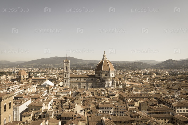 Флорентийский городской пейзаж с собором Флоренции в солнечный день, Тоскана, Италия