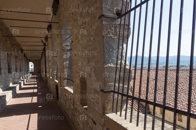 Длинный коридор к башне Палаццо Веккьо во Флоренции, Тоскана, Италия