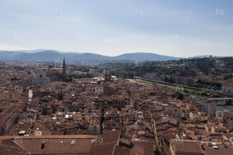 Флорентийский городской пейзаж с красными крышами в солнечный день, Тоскана, Италия