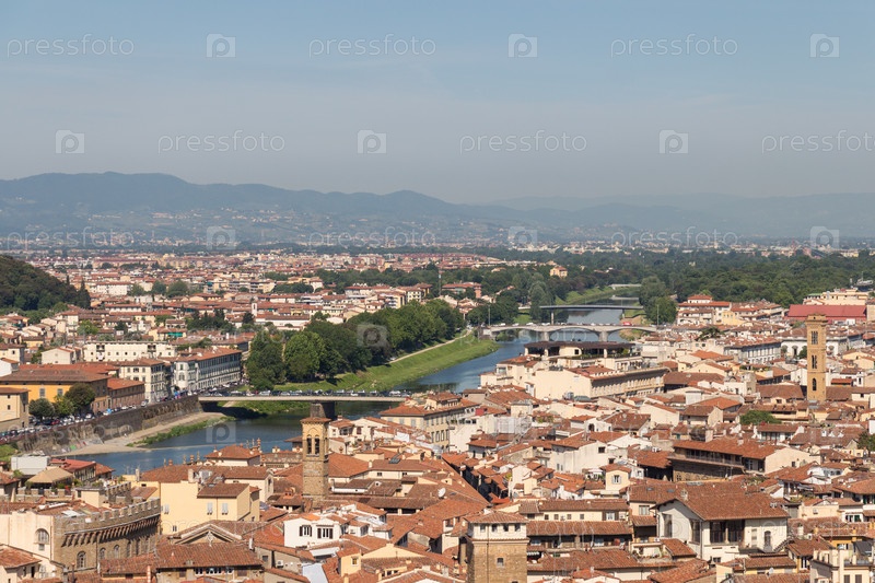 Флорентийский городской пейзаж с красными крышами, Тоскана, Италия