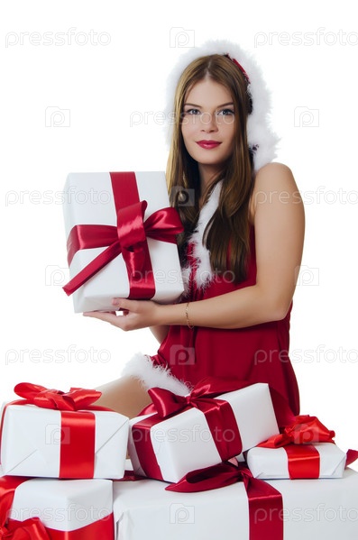 Рождественская девушка с подарками, изолировано