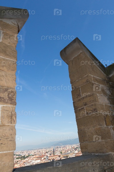 Флорентийский городской пейзаж на крыше Палаццо Веккьо, Флоренция, Тоскана, Италия