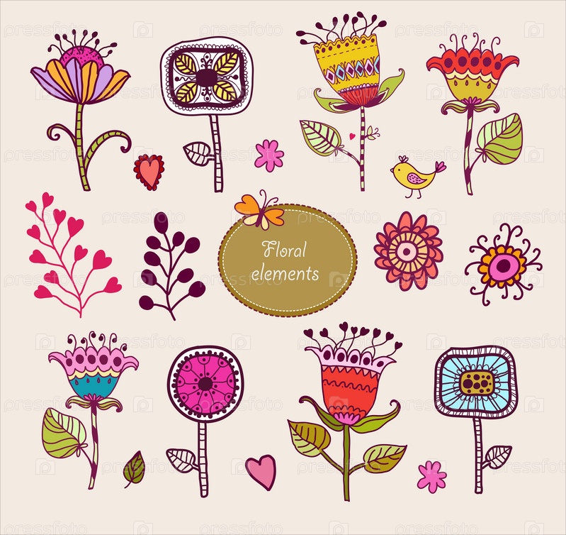 Нарисованный вручную набор цветочных элементов