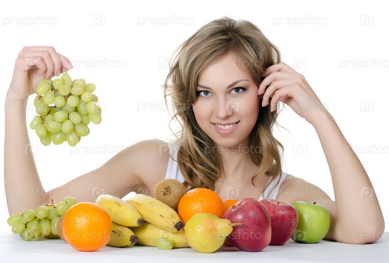 Красивая девушка с фруктами и овощами