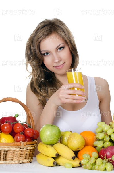 Красивая девушка с фруктами и овощами