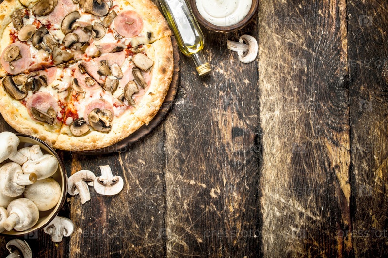 Пицца с грибами и ветчиной