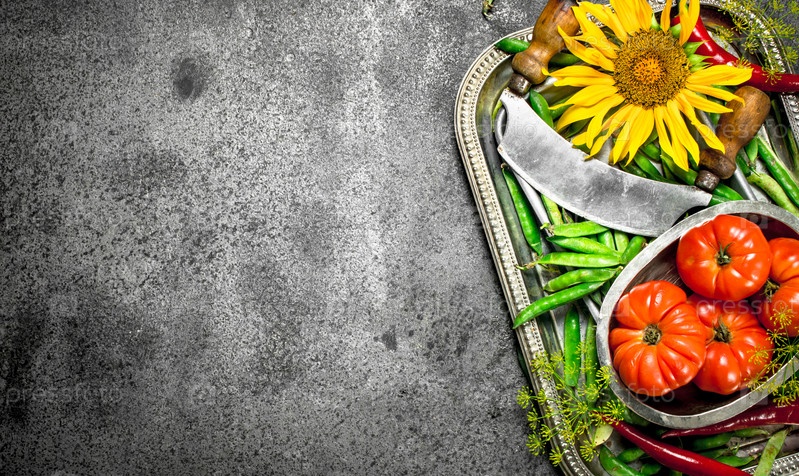 Зеленый горошек, помидоры и перец чили
