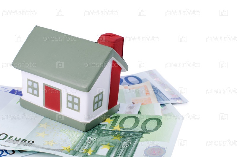 Игрушечный дом и банкноты евро, изолировано