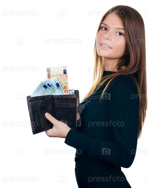 Красивая девушка с банкнотами евро