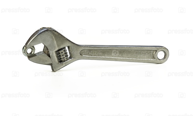 Разводной ключ с гайкой на белом фоне
