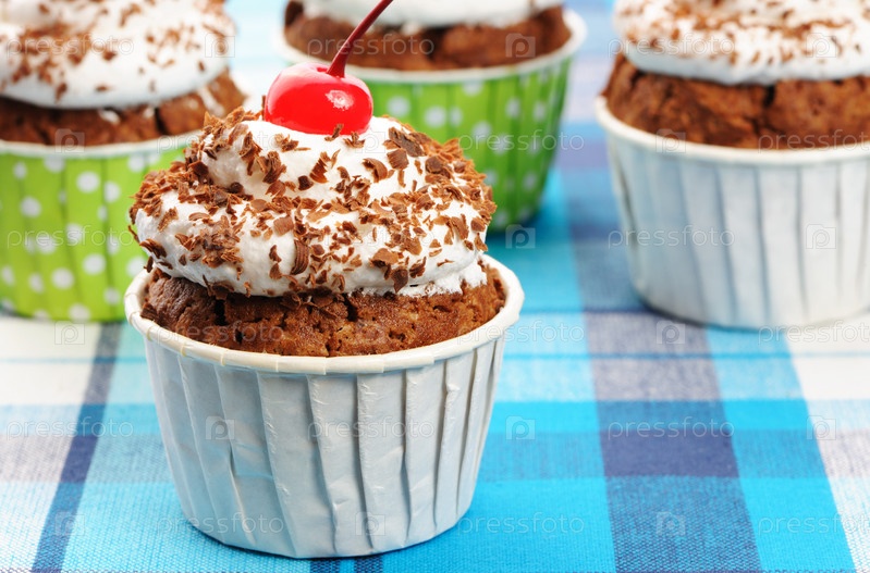 Кексы со взбитыми сливками и вишней