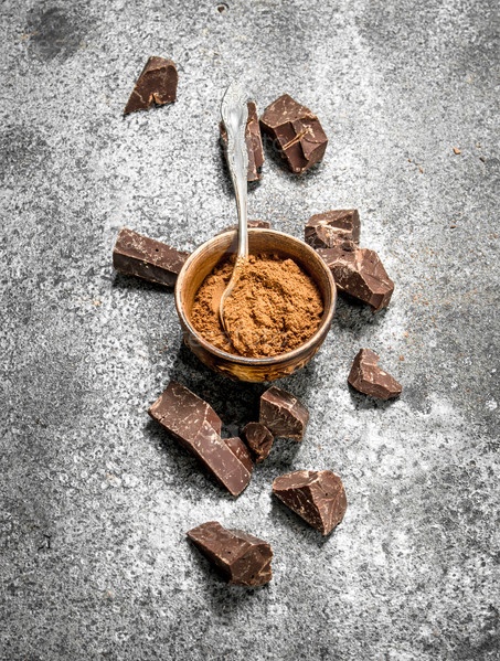Куски шоколада с какао-порошком