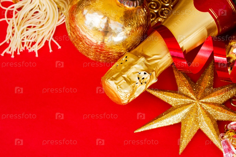 Рождественские украшения и бутылка шампанского