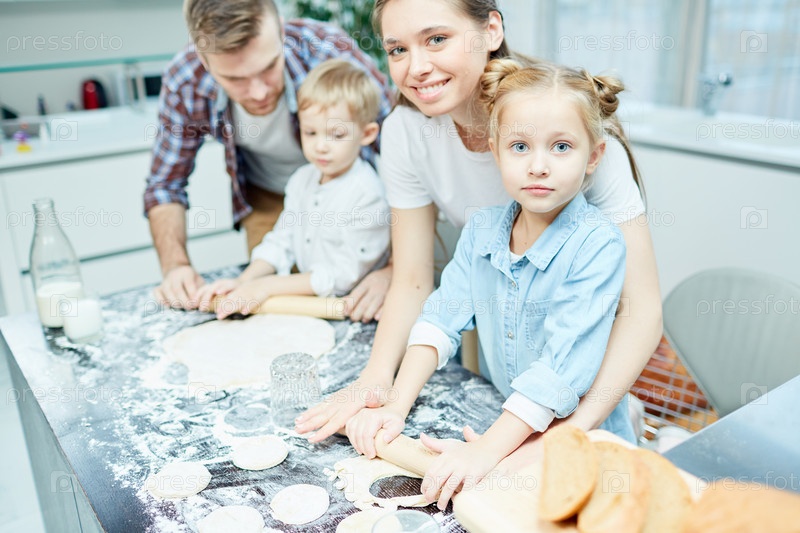 Семья готовит печенье