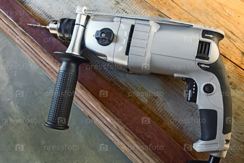 Малая электрическая дрель со сверлом