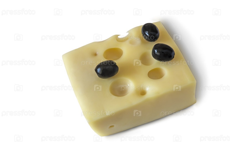 Сыр и оливки на белом фоне