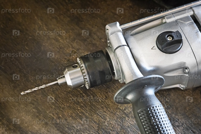 Малая электрическая дрель со сверлом
