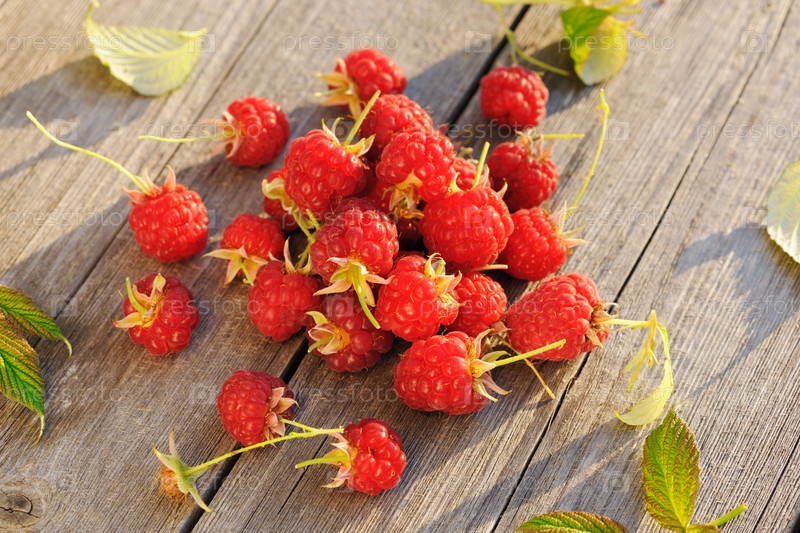 Малина на деревянном столе