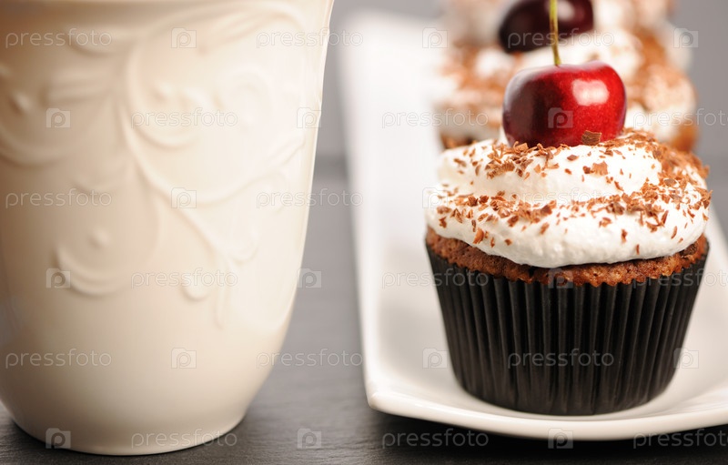 Кексы с взбитыми сливками и вишней