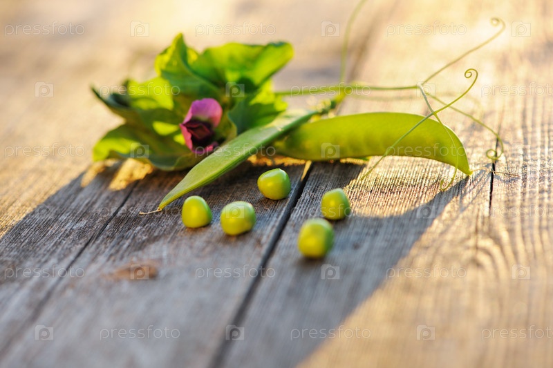 Свежий горох на деревянном столе
