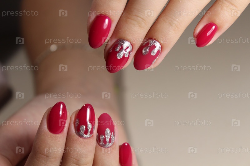 Молодежный дизайн маникюра, красный и серебристый