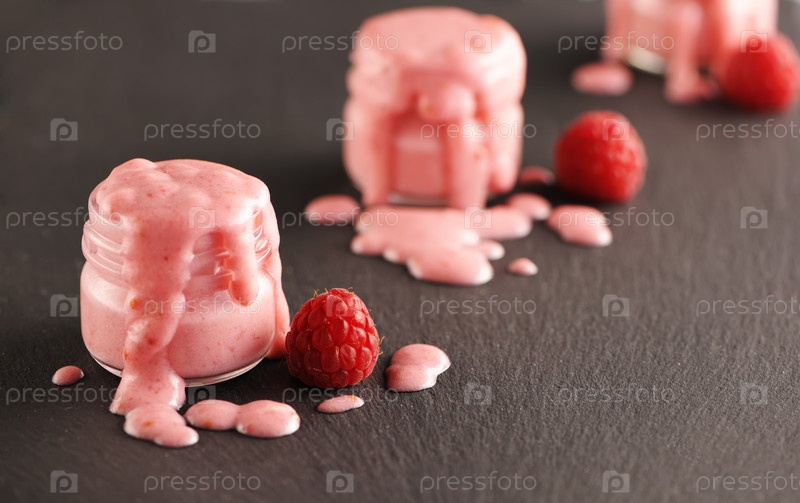 Свежий йогурт с малиной