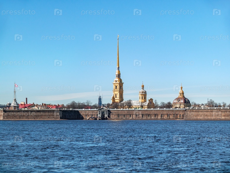 Панорама Петропавловской крепости в Санкт-Петербурге в начале весны