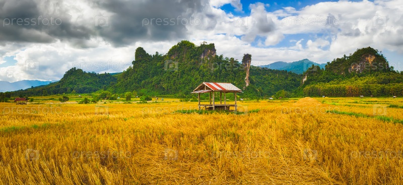 Красивый сельский пейзаж. Ванг-Вьенг, Лаос. Панорама