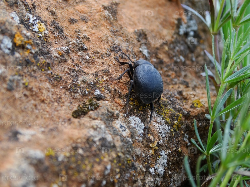 Черный жук ползет по скале