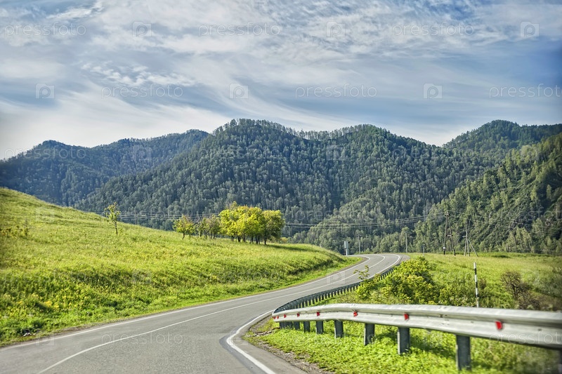 Асфальтированная дорога в горах Горного Алтая