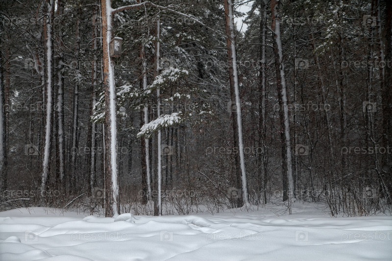 Кузбасс, реликтовый сосновый бор после снегопада. Пушистый снег на ветвях деревьев в лесу