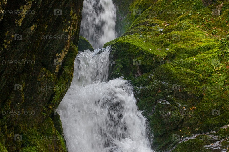 Алтай, Водопад Эстюбе озеро Телецкое. Водопад осенью заросший зеленым мхом